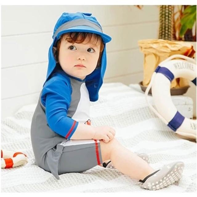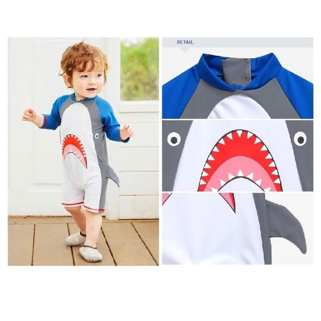 防曬泳衣 嬰兒泳衣 兒童泳衣 寶寶泳衣 卡通兒童泳衣可愛鯊魚連身游泳衣寶寶造型衣防水母