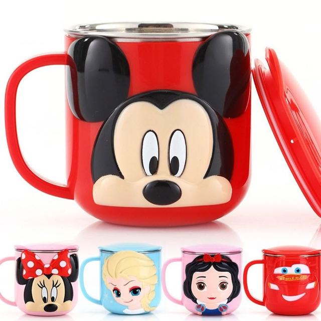 兒童杯 防摔幼兒園不銹鋼杯子 幼兒寶寶喝水杯子帶蓋 兒童水杯 牛奶杯 迪士尼兒童水杯 漱口杯