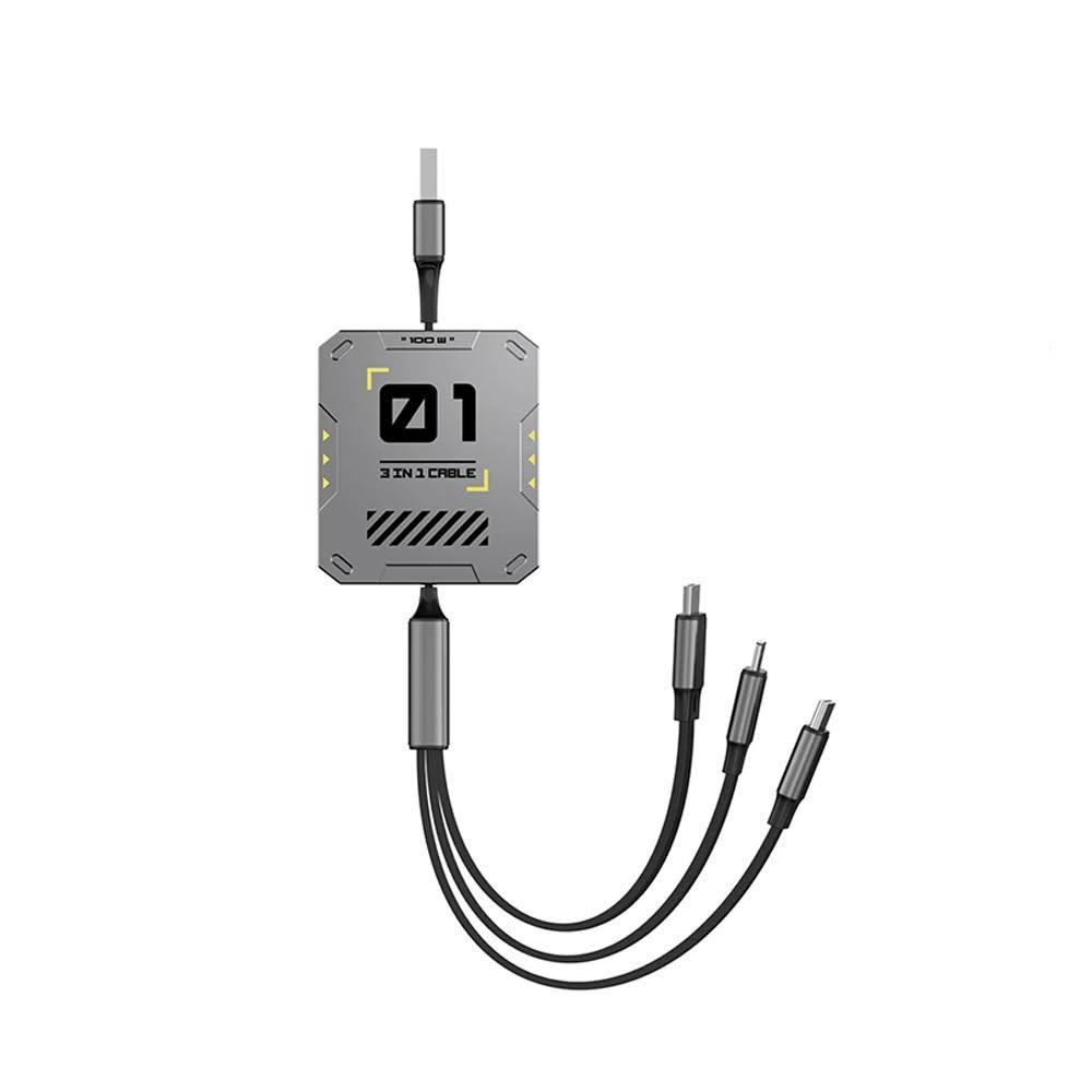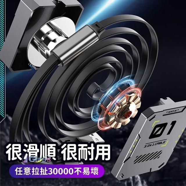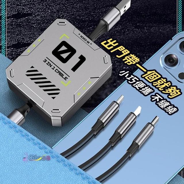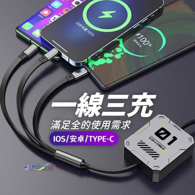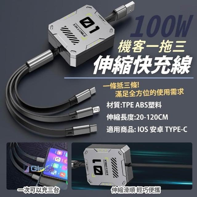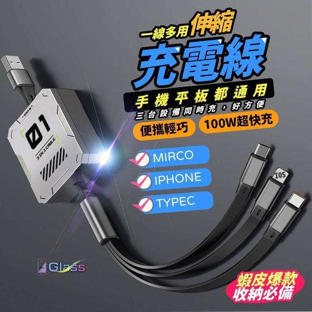 蘋果小舖 100W機客一拖三伸縮快充線 type c 充電線 6A 三合一數據線 快充線 收納數據線 車載多功能充電