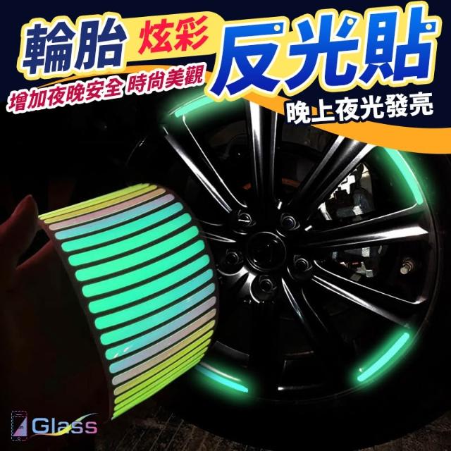 蘋果小舖 反光車身貼條(20片) 框反光警示貼 車用 防水 輪胎改裝警示貼 車身防刮蹭膠條 車輪夜光貼螢光貼 腳踏車機車摩托車汽車反光條