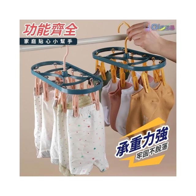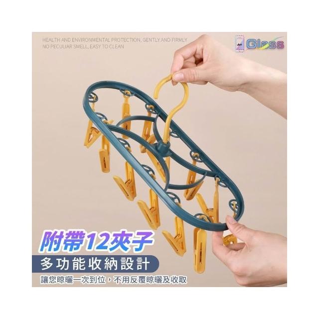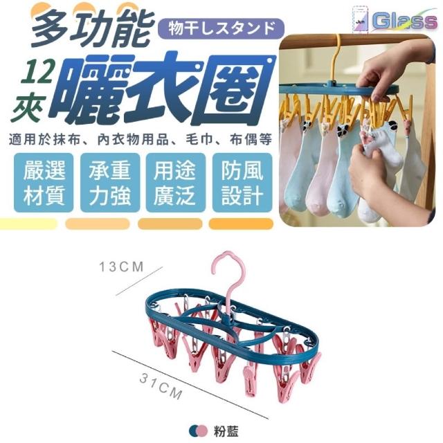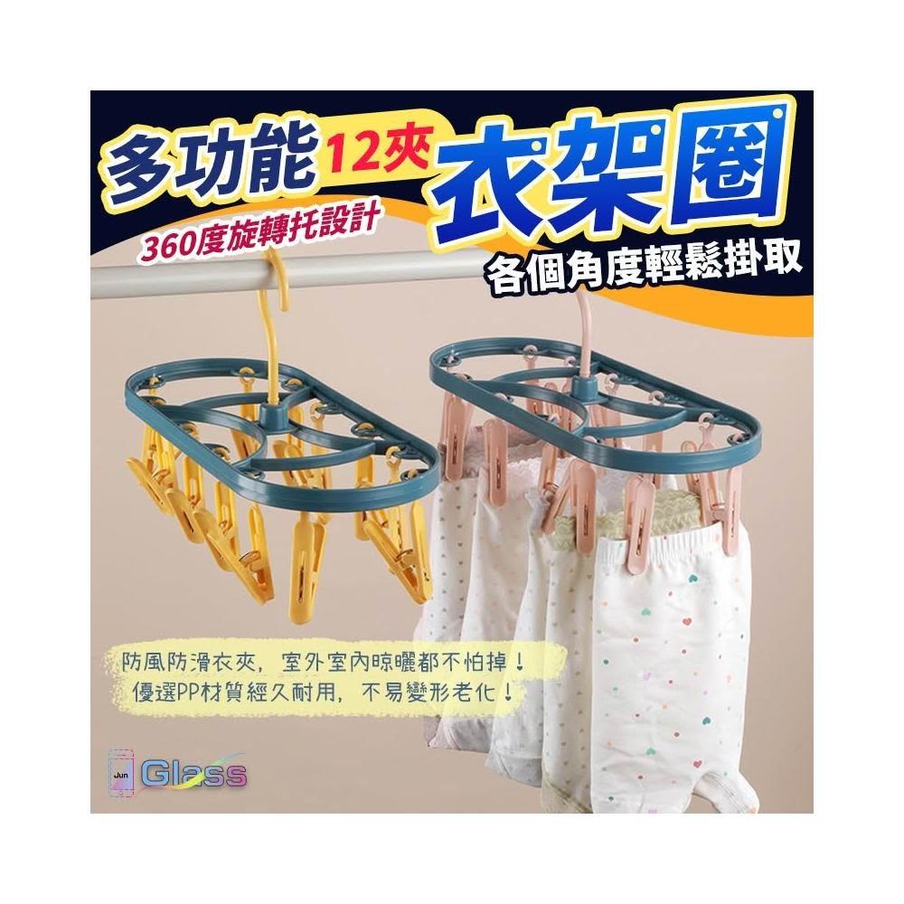 蘋果小舖 多功能12夾曬衣圈 曬衣架 防風曬襪架 防風衣架 曬衣夾 內褲夾 褲夾 襪子 衣夾 防滑衣架