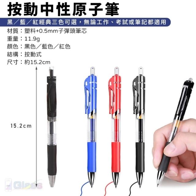 蘋果小舖🍎一支3元🍎5支 按壓中性原子筆 (0.5mm) 大容量 原子筆 按壓式 簽字筆 辦公文具 筆芯 中性筆