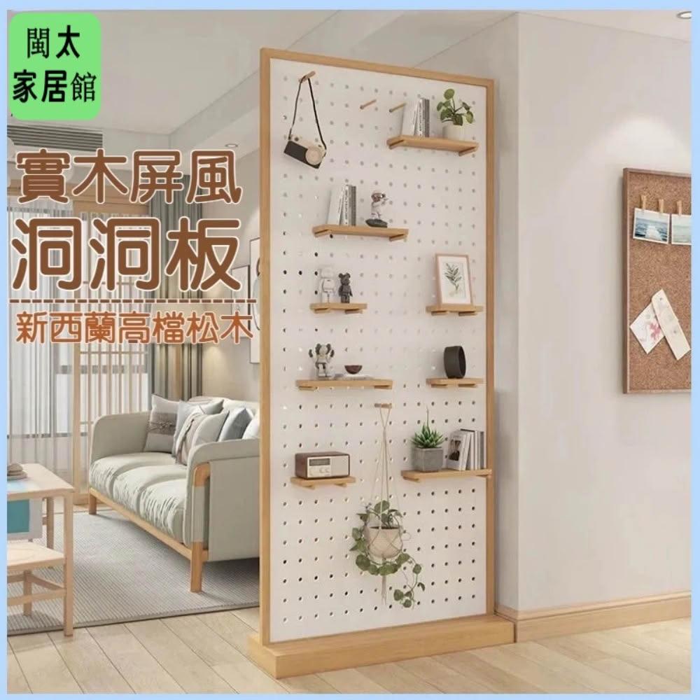 台中有貨 實木洞洞板屏風 洞洞板置物架 玄關隔斷 新西蘭松木 實木屏風 落地洞洞板 玄關櫃屏風