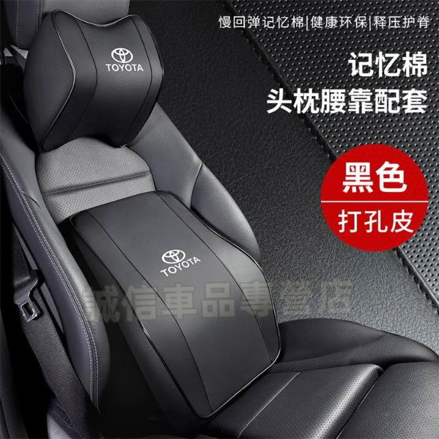 豐田汽車頭枕腰枕靠墊 記憶棉 打孔皮革 車用護頸枕腰靠墊 YARIS ALTIS VIOS rav4 CAmry chr Wish專用