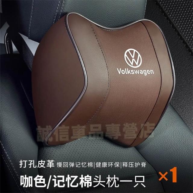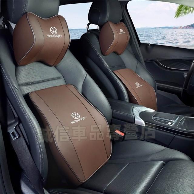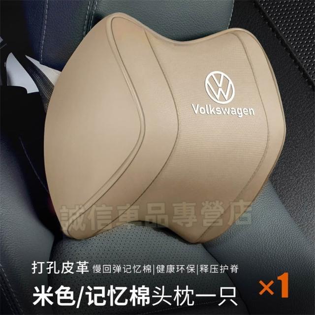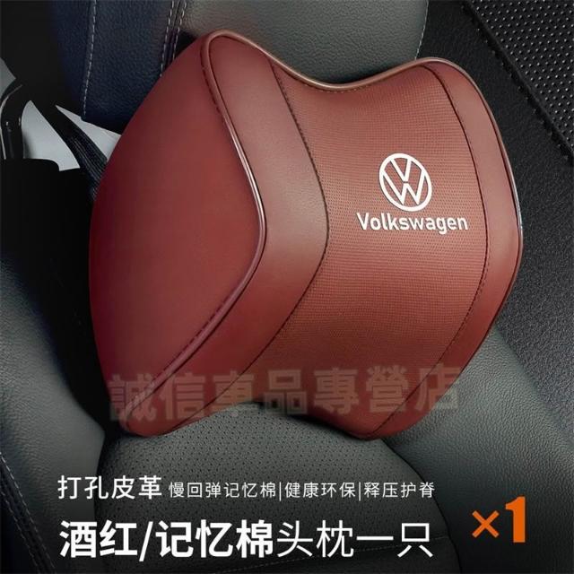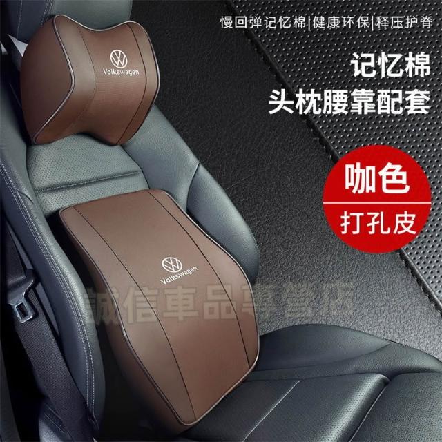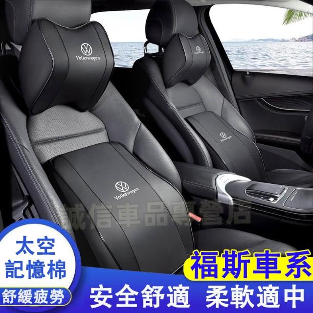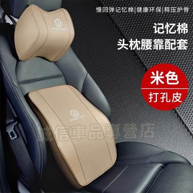 福斯汽車頭枕腰枕靠墊 記憶棉 打孔皮革 車用護頸枕腰靠墊 GOlf Tiguan TOuran POlo troc passat ID.4專用