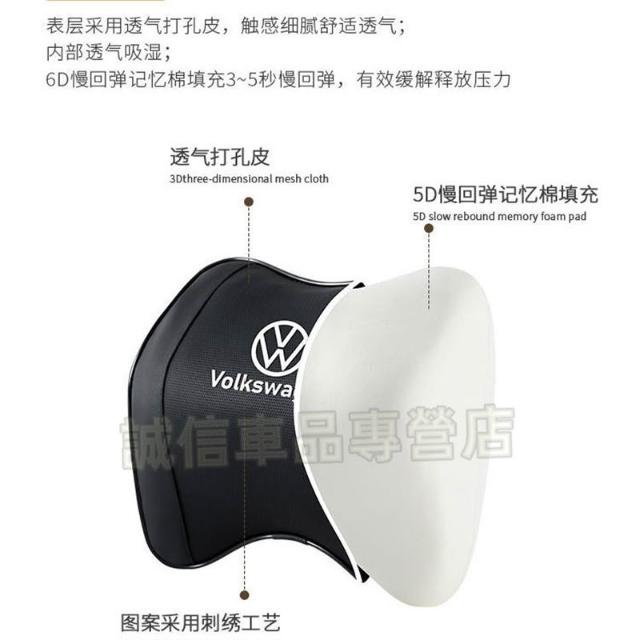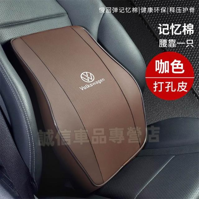 福斯汽車頭枕腰枕靠墊 記憶棉 打孔皮革 車用護頸枕腰靠墊 GOlf Tiguan TOuran POlo troc passat ID.4專用