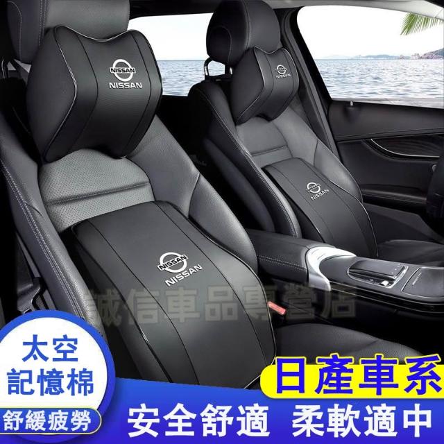 日產汽車頭枕腰枕靠墊 記憶棉 打孔皮革 車用護頸枕腰靠墊 ARIYA LIVINA TIIDA SENTRA KIcks X-trail Altima專用