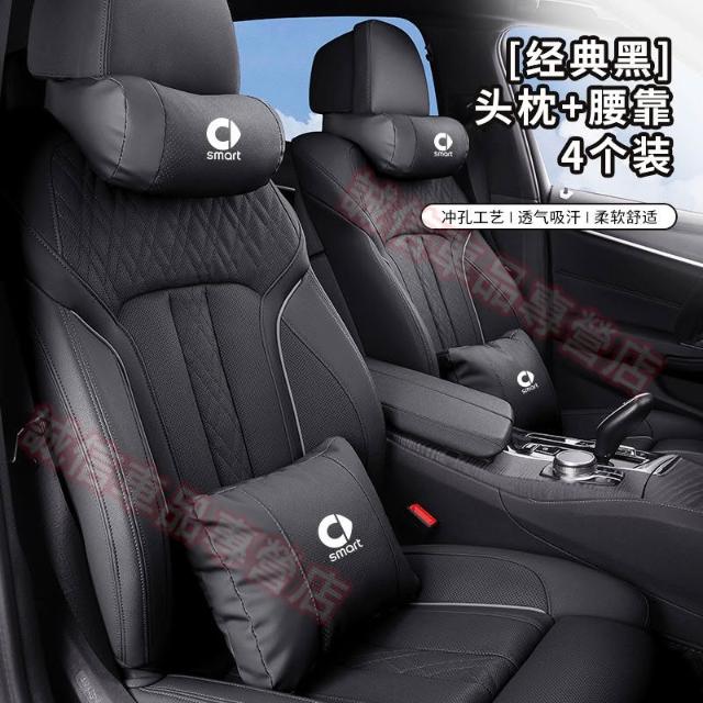 賓士SMART 座椅頭枕 腰靠 打孔皮頭枕腰墊 納帕皮護頸枕Forfour Fortwo Cabrio Roadster
