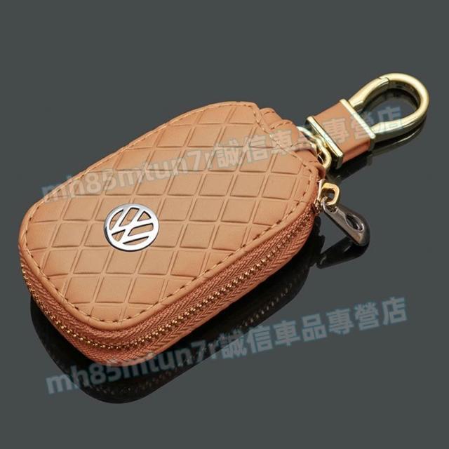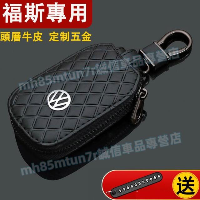 福斯真皮鑰匙包 汽車鑰匙套扣 鑰匙遙控器保護套 牛皮鑰匙殼 GOlf Tiguan TOuran POlo troc適用