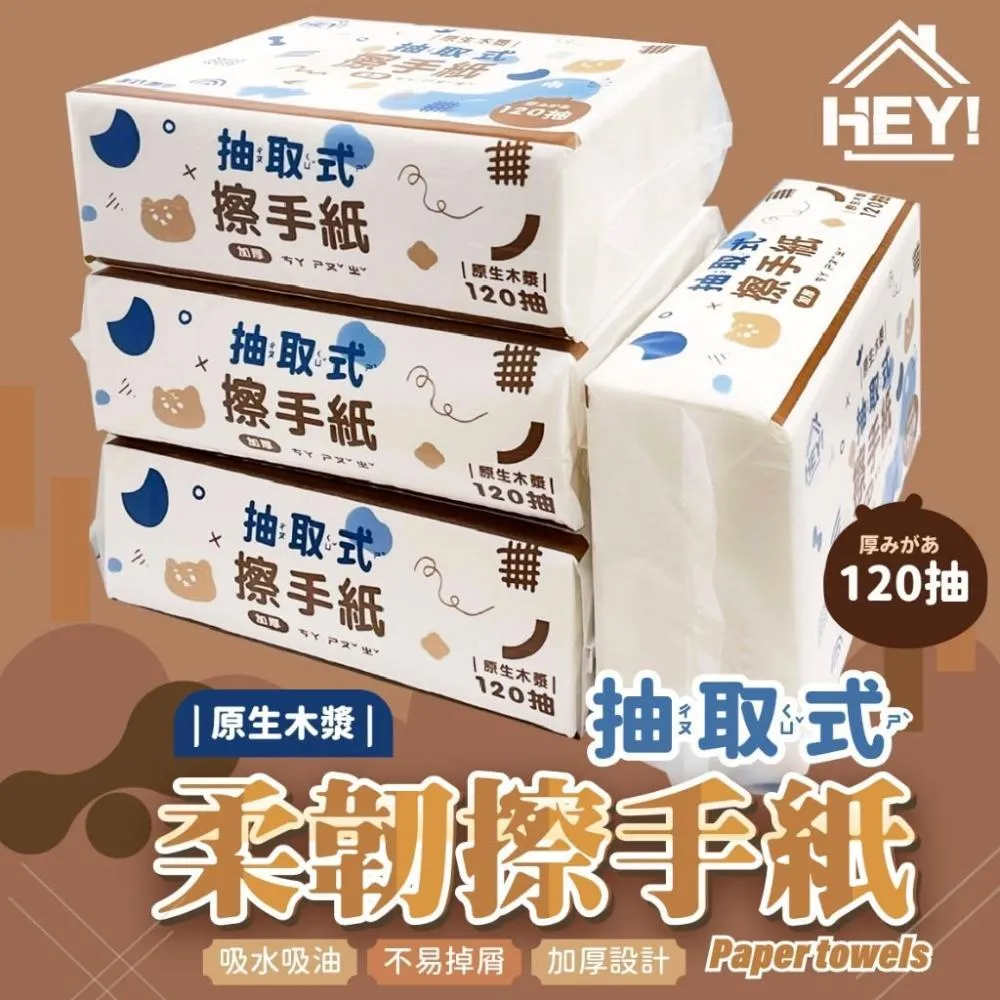 HEY!全新包裝加厚設計 抽取式擦手紙 廚房紙巾 廚房擦手紙 吸油紙巾 擦手紙巾 餐巾紙 衛生紙 120抽 紙巾 衛生巾