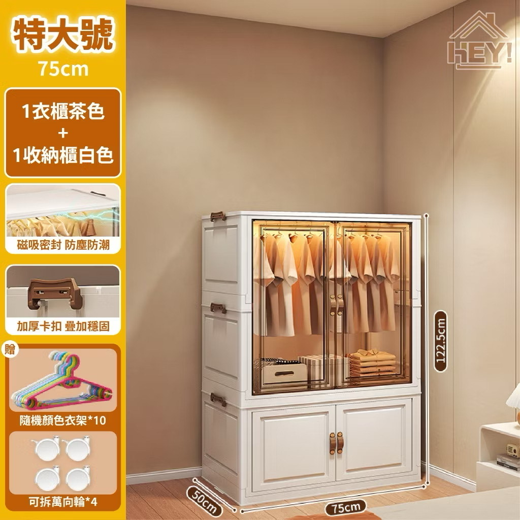 HEY!超大88/75cm免安裝折疊衣服收納櫃衣櫥塑膠家用零食儲物櫃收納箱 寶寶衣服收納櫃 儲物櫃 衣櫃
