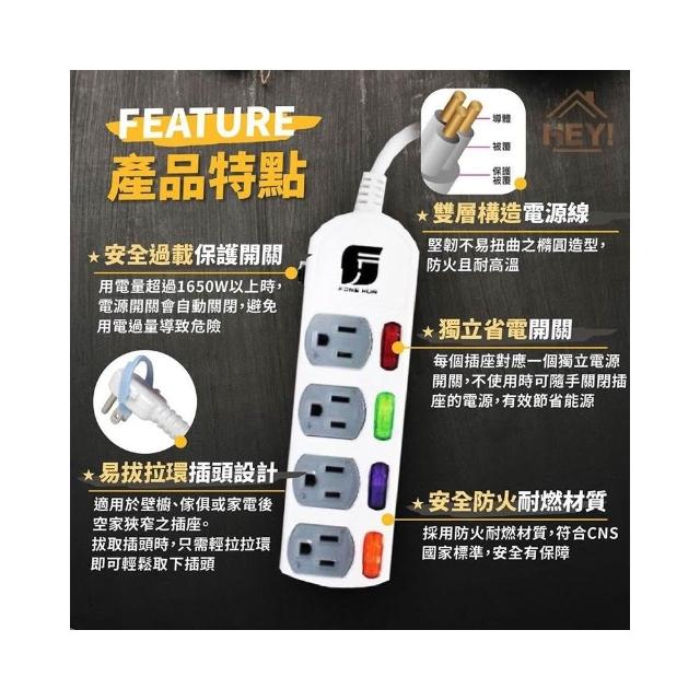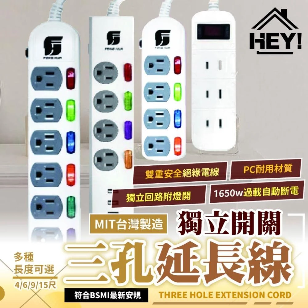 HEY!家電好幫手 MIT延長線 獨立開關 過載斷電 三孔延長線 最新安規 USB插座 三開三插 四開四插 六開六插