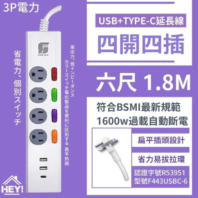 HEY!家電好幫手 MIT延長線 獨立開關 過載斷電 三孔延長線 最新安規 USB插座 三開三插 四開四插 六開六插