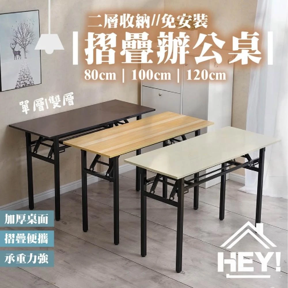 HEY!雙層碳素鋼折疊辦公桌 免安裝 ( 辦公桌 書桌 折疊桌 活動桌 摺疊桌 會議桌 長桌 餐桌 桌子)