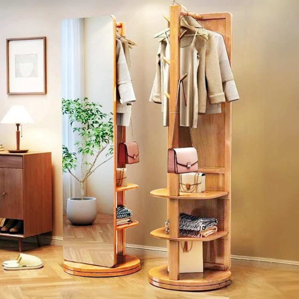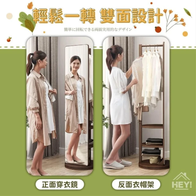 HEY!3合1實木旋轉穿衣鏡掛衣架加厚旋轉底座 ( 一架多用 全身鏡 落地鏡 試衣鏡 穿身鏡 衣帽鏡 掛衣架 鏡子 )
