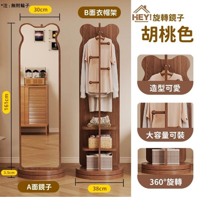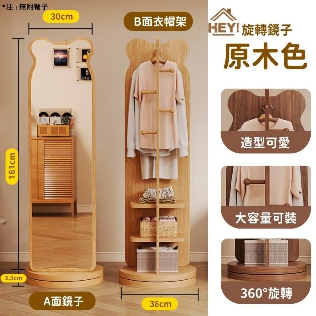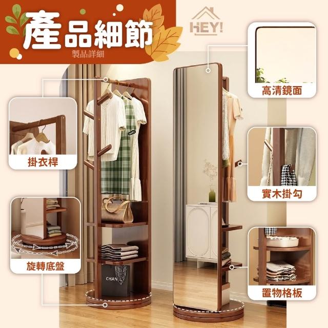 HEY!3合1實木旋轉穿衣鏡掛衣架加厚旋轉底座 ( 一架多用 全身鏡 落地鏡 試衣鏡 穿身鏡 衣帽鏡 掛衣架 鏡子 )