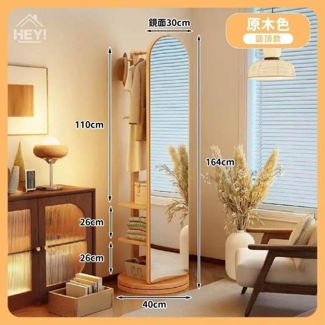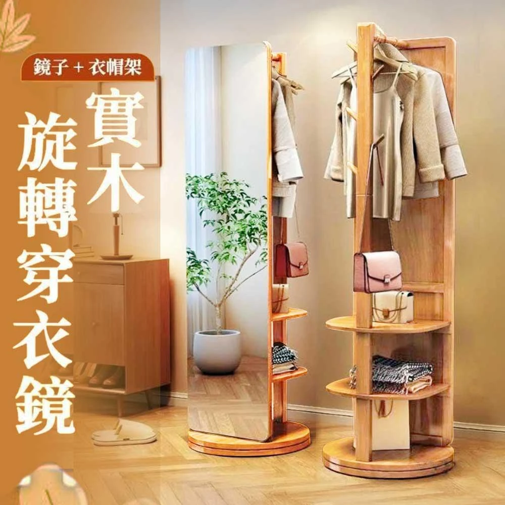 HEY!3合1實木旋轉穿衣鏡掛衣架加厚旋轉底座 ( 一架多用 全身鏡 落地鏡 試衣鏡 穿身鏡 衣帽鏡 掛衣架 鏡子 )