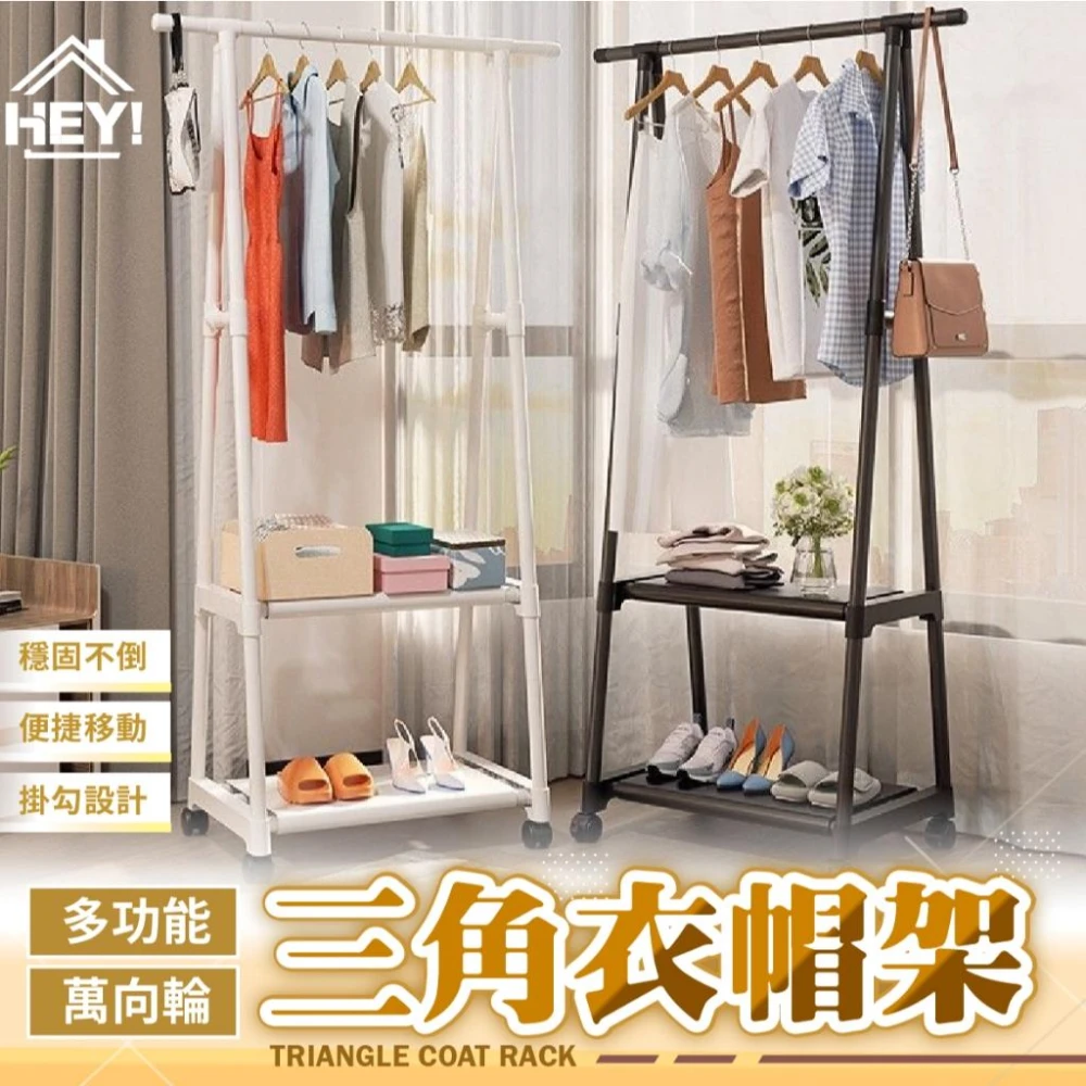 HEY!160高多功能DIY三角衣帽架 簡易收納衣架 收納架 移動衣帽架 落地衣架 晾衣架 組合式 帶滾輪 置物架 掛衣架