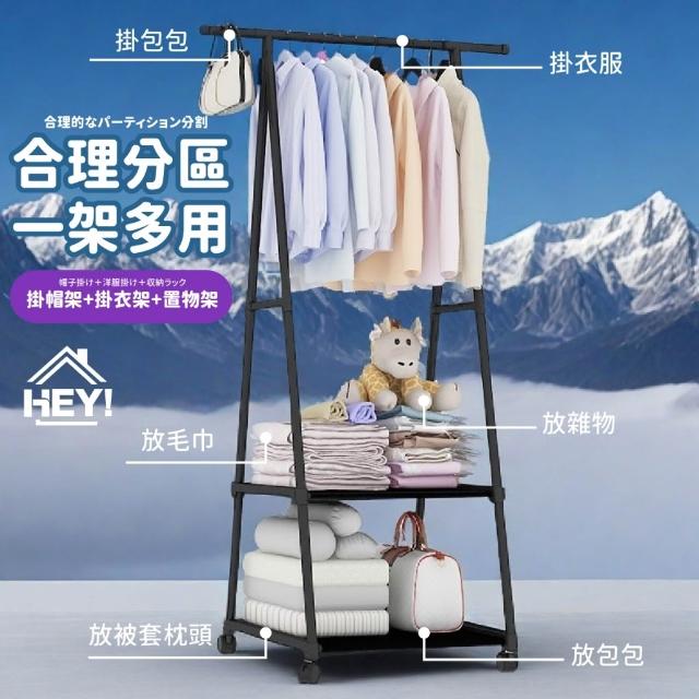 HEY!160高多功能DIY三角衣帽架 簡易收納衣架 收納架 移動衣帽架 落地衣架 晾衣架 組合式 帶滾輪 置物架 掛衣架