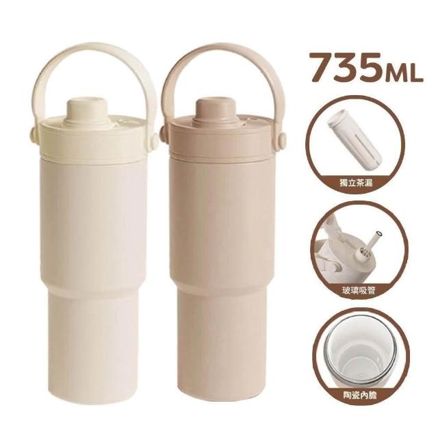 HEY!買一送一陶瓷雙飲手提冰霸杯 735ml ( 陶瓷保溫杯 隨行杯 陶瓷杯 環保杯 冰壩杯 保溫瓶 隨行杯瓶 咖啡杯 )