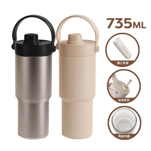 HEY!買一送一陶瓷雙飲手提冰霸杯 735ml ( 陶瓷保溫杯 隨行杯 陶瓷杯 環保杯 冰壩杯 保溫瓶 隨行杯瓶 咖啡杯 )