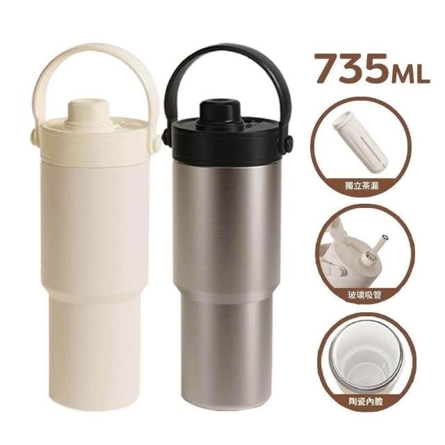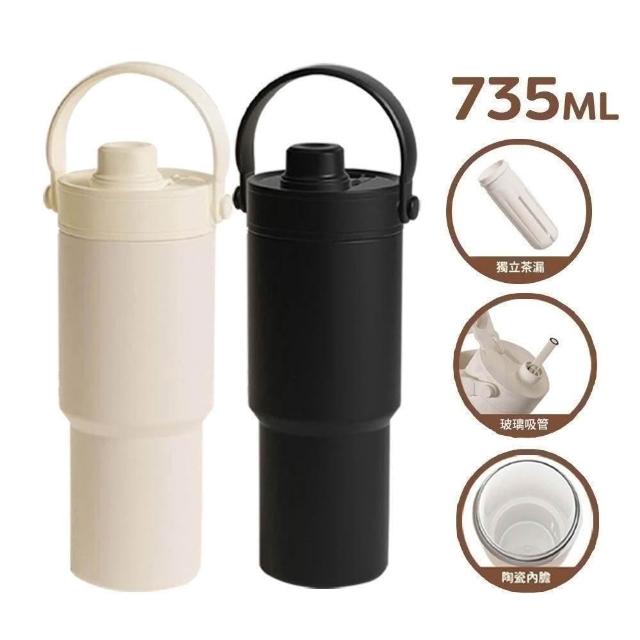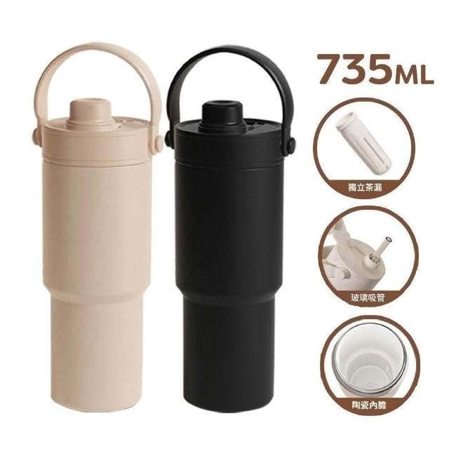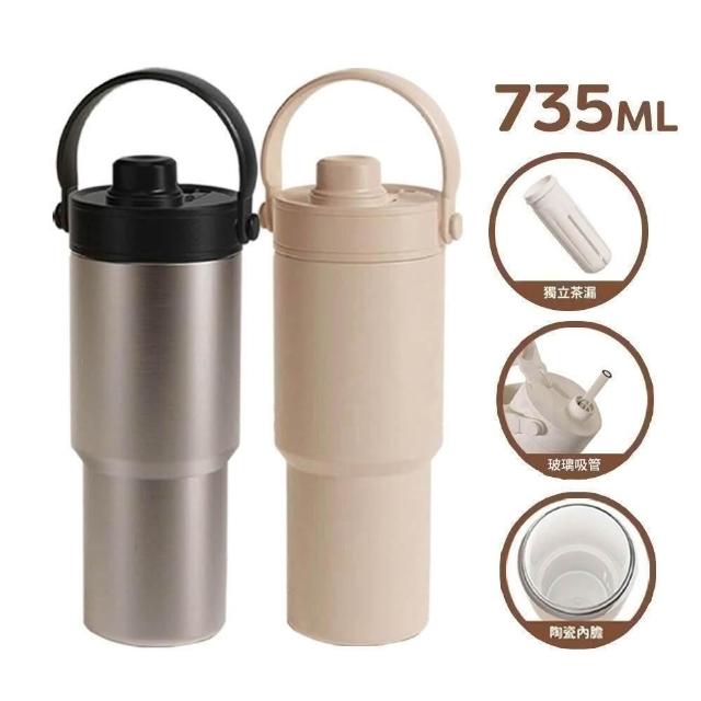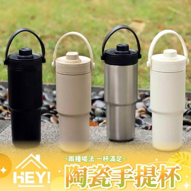 HEY!買一送一陶瓷雙飲手提保溫瓶735ml ( 陶瓷保溫杯 隨行杯 陶瓷杯 環保杯 保溫瓶 隨行杯瓶 咖啡杯 冰壩杯 水壺)