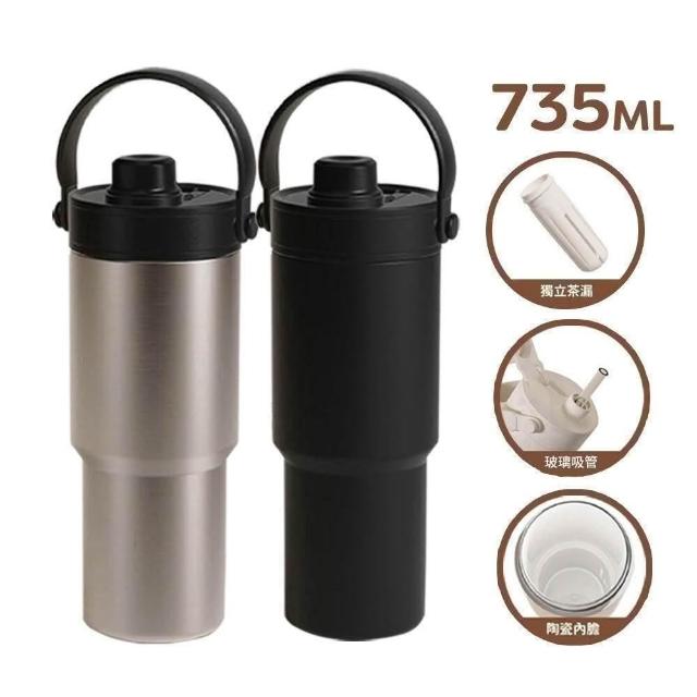 HEY!買一送一陶瓷雙飲手提保溫瓶735ml ( 陶瓷保溫杯 隨行杯 陶瓷杯 環保杯 保溫瓶 隨行杯瓶 咖啡杯 冰壩杯 水壺)