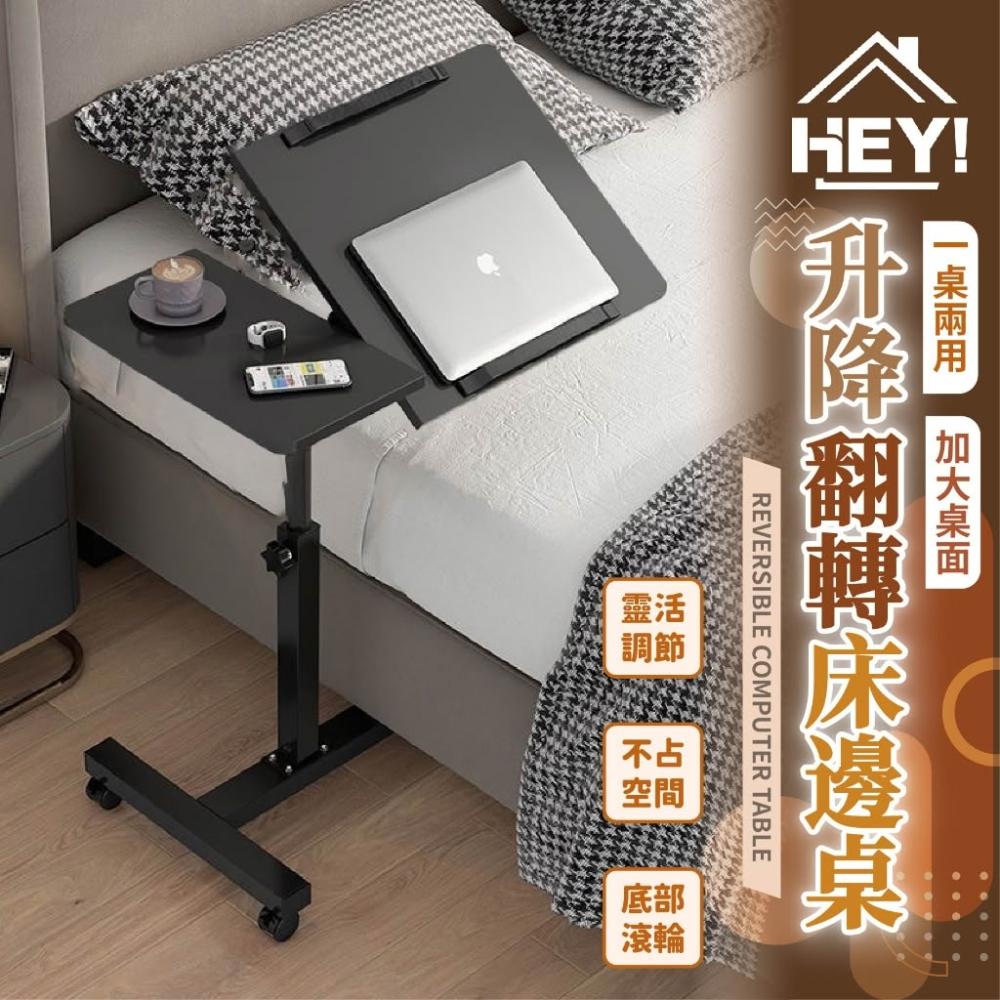 HEY!加大桌面翻轉折疊升降邊桌 (升降邊桌 升降桌 氣壓式邊桌)