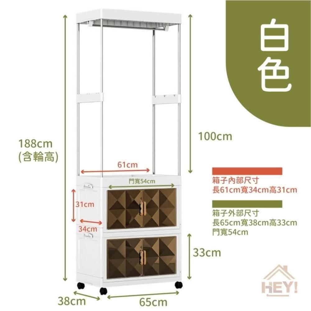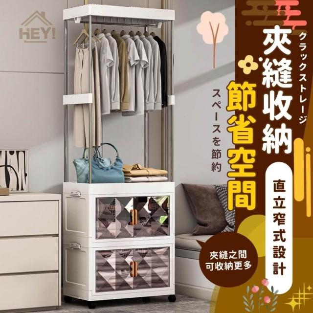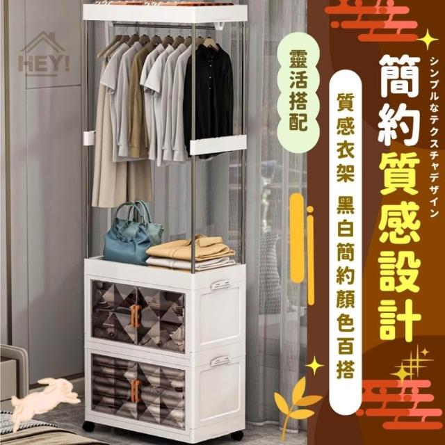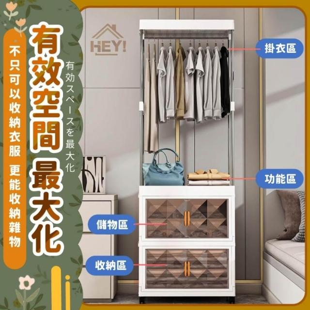 HEY!多功能附輪玄關衣架收納櫃 ( 多功能衣架 兒童衣櫃 收納櫃 摺疊衣櫃 門口置物櫃 雙開收納箱 掛衣架)