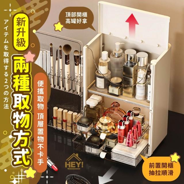 HEY!雙開式上掀3D透明桌上小物收納盒 ( 藥箱文具化妝品保養品收納櫃 大容量 抽屜收納 收納箱)