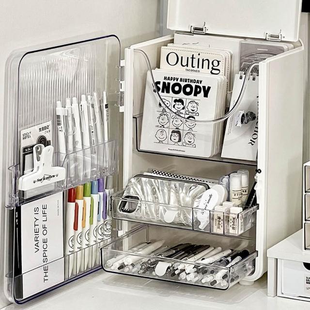 HEY!雙開式上掀3D透明桌上小物收納盒 ( 藥箱文具化妝品保養品收納櫃 大容量 抽屜收納 收納箱)