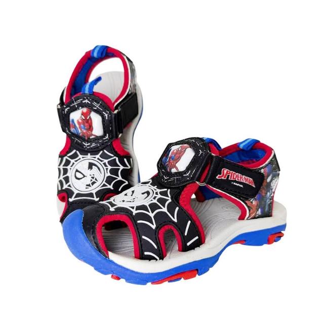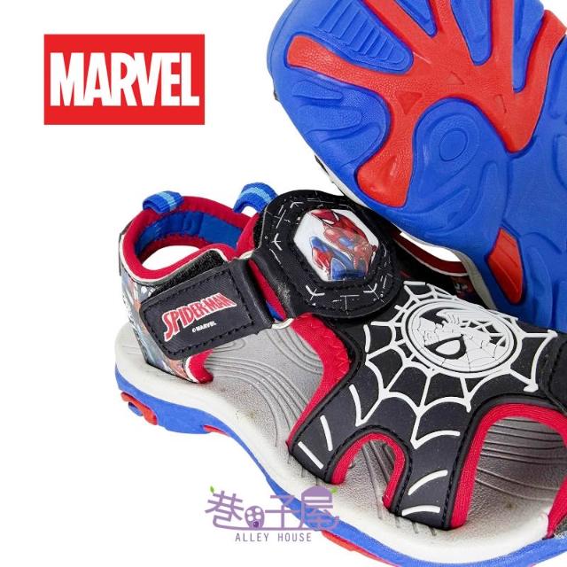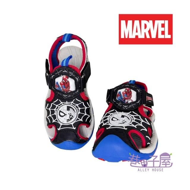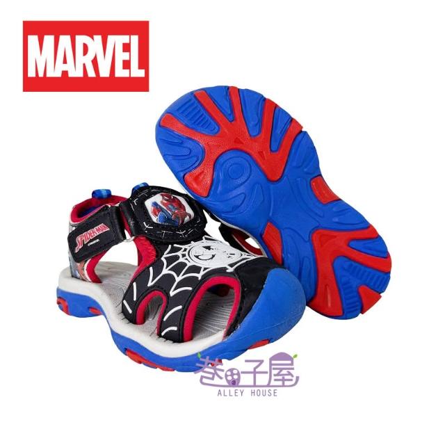 Marvel 漫威現貨 正版授權 蜘蛛人 童鞋 電燈 超輕量 護趾涼鞋 運動涼鞋 [MNKT35112] 黑紅【巷子屋】