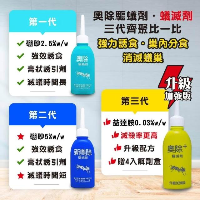 第三代-奧除+蟻滅劑(黃瓶)80g(內附4大藥盒)升級版 螞蟻藥 火蟻 除蟲+送螞蟻藥藥專用餌劑+再加碼送4入誘餌盒