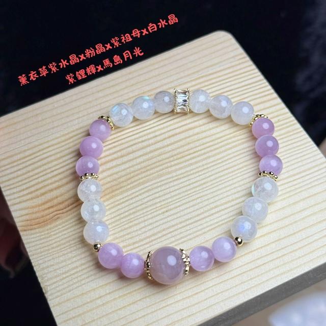Tai Fu.開運水晶 薰衣草紫水晶x粉晶x紫祖母x白水晶 紫鋰輝x馬島月光設計款圓珠