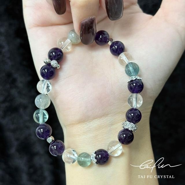 Tai Fu.開運水晶 紫水晶x白水晶x螢石x拉長石設計款圓珠