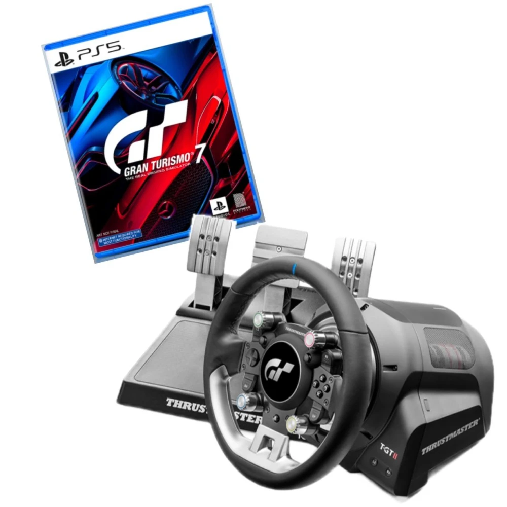 THRUSTMASTER 圖馬斯特T-GT II 王者旗艦賽道 扭力回饋真皮方向盤金屬三踏板組 + GT7 遊戲片組合