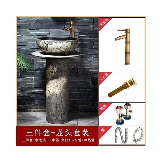 戶外複古青花瓷立柱式洗臉盆 別墅花園陶瓷一體洗手盆 室外陽臺洗手盆 戶外陶瓷洗手池 高立柱盆 洗手臺