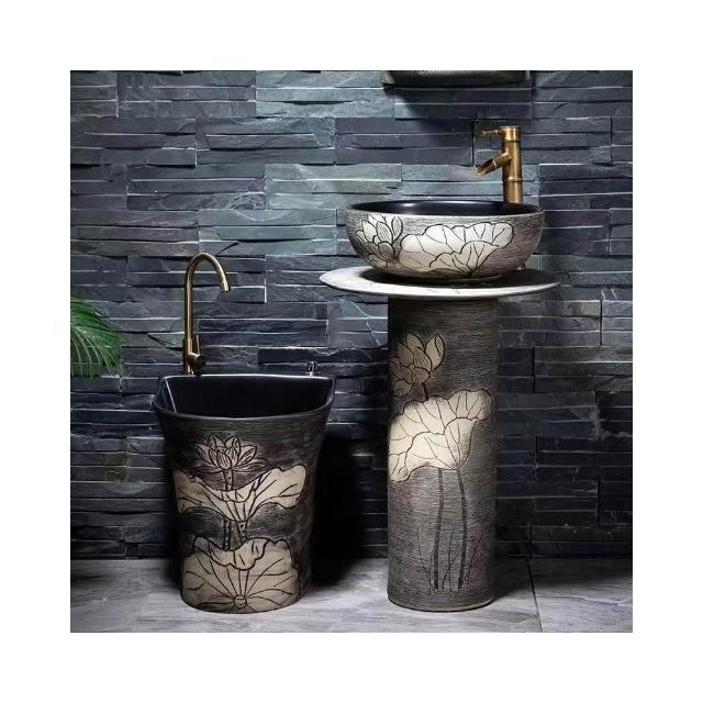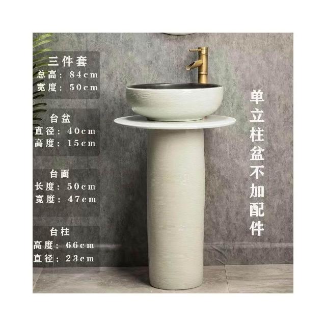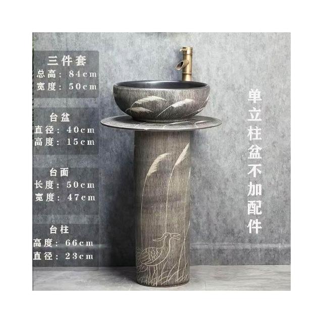 戶外複古青花瓷立柱式洗臉盆 別墅花園陶瓷一體洗手盆 室外陽臺洗手盆 戶外陶瓷洗手池 高立柱盆 洗手臺