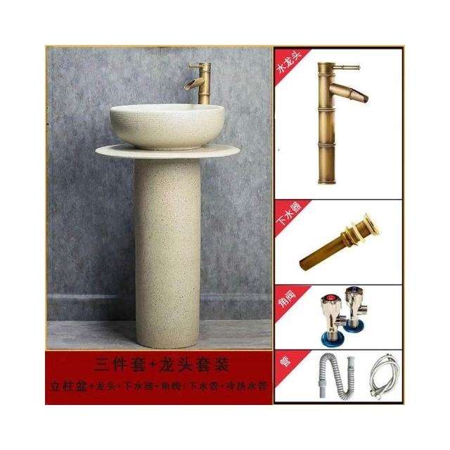 戶外複古青花瓷立柱式洗臉盆 別墅花園陶瓷一體洗手盆 室外陽臺洗手盆 戶外陶瓷洗手池 高立柱盆 洗手臺