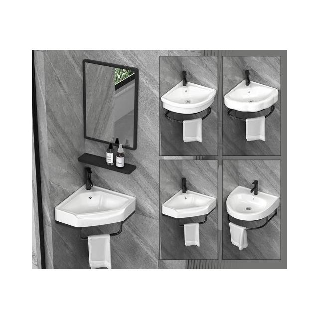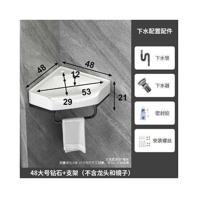優質陶瓷掛壁洗手盆 陶瓷洗手盆 不銹鋼支架掛墻式洗手盆 小戶型迷你三角方形洗臉盆 臺面盆