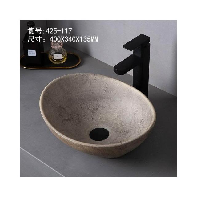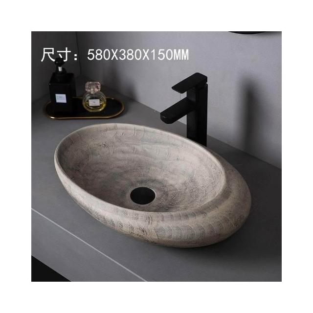 水泥灰工業風臺上盆 優質陶瓷洗手盆 大尺寸陶瓷洗手盆 衛生間洗臉檯盆 陶瓷藝術盆 陶瓷臺上盆