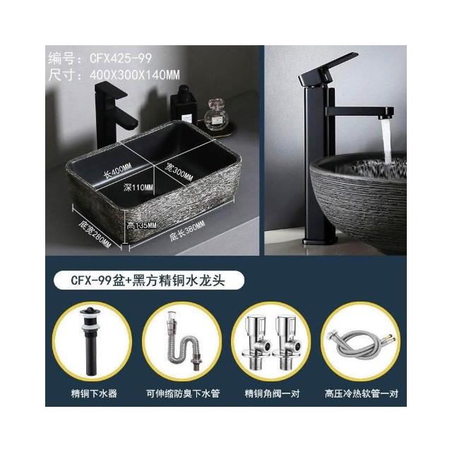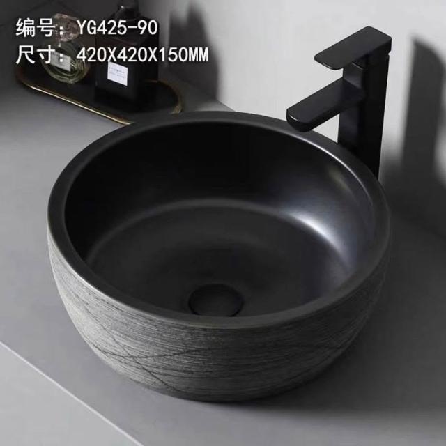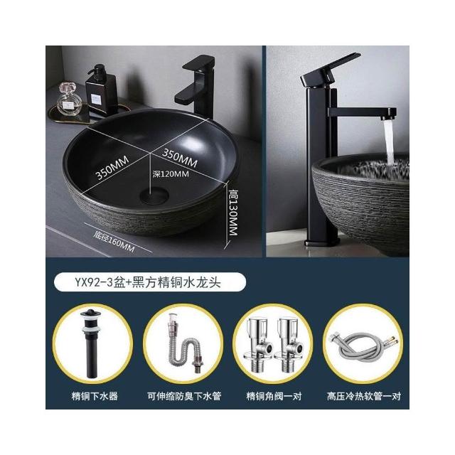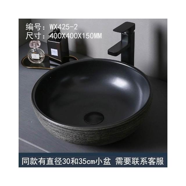 優質陶瓷洗手盆 黑色臺上盆藝術盆 大尺寸庭院洗手陶瓷盆單盆 衛生間陶瓷洗臉盆 戶外陶瓷水池