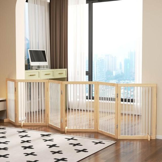 可折疊免安裝擋狗柵欄寵物圍欄 折疊寵物圍欄 貓咪圍欄 狗狗圍欄 陽臺圍擋 室內隔離門 木製防越獄門欄
