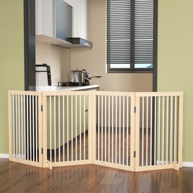 可折疊免安裝擋狗柵欄寵物圍欄 折疊寵物圍欄 貓咪圍欄 狗狗圍欄 陽臺圍擋 室內隔離門 木製防越獄門欄