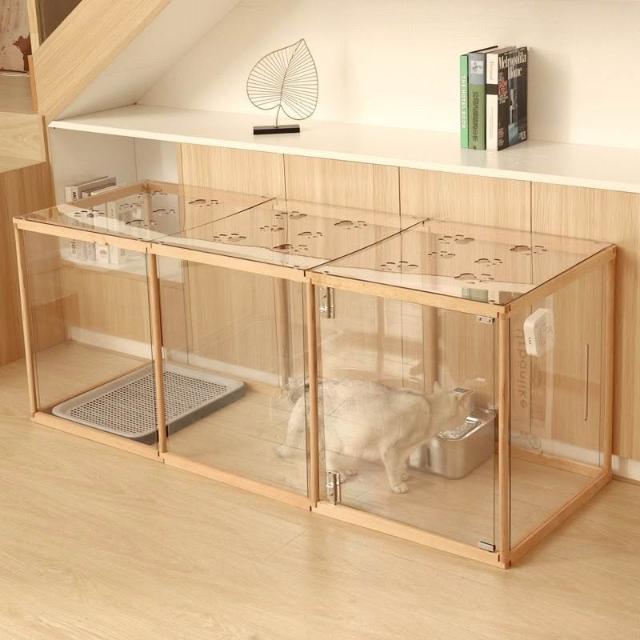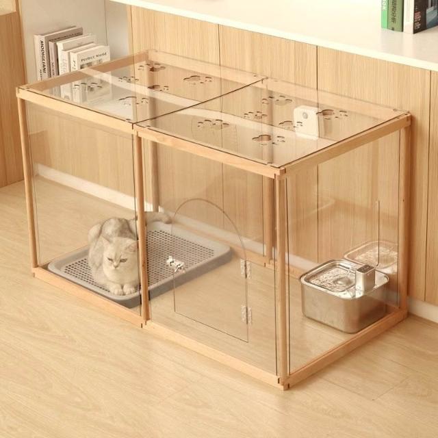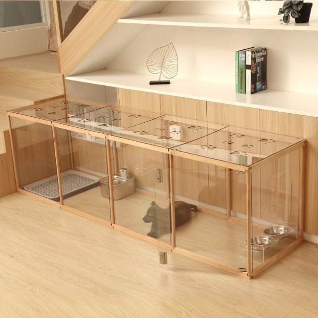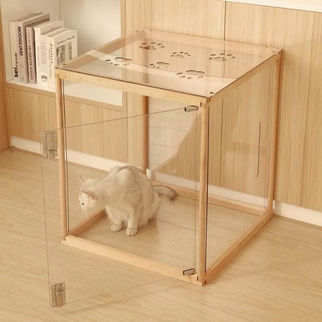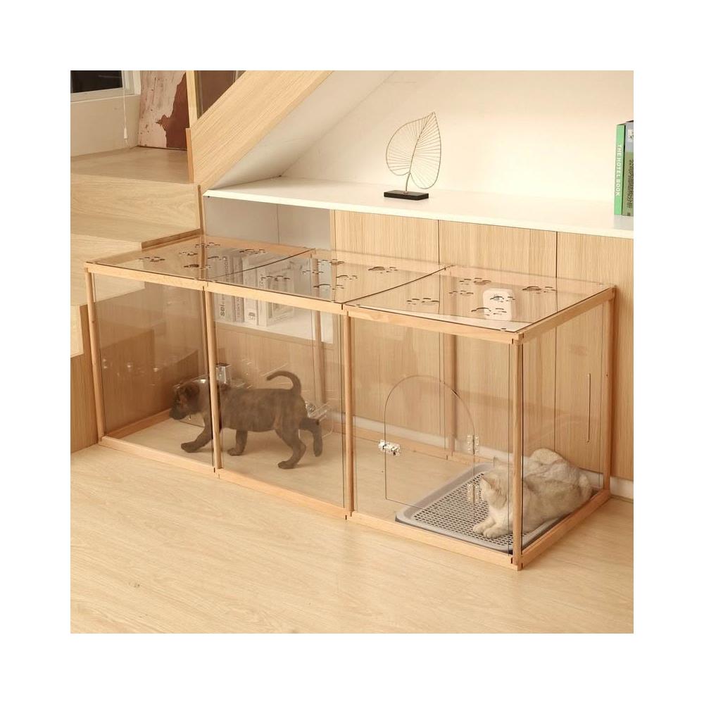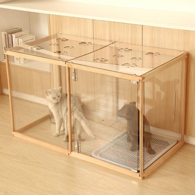 透明寵物圍欄 透明寵物圍欄 帶頂透明貓咪籠子 小型犬狗狗兔子隔離防越獄實木自由組圍欄 閤透明圍欄
