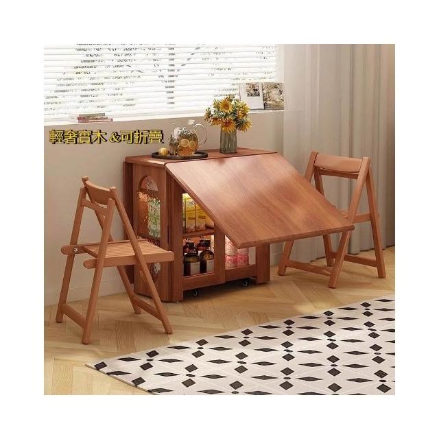 中古風折疊桌 實木摺疊餐桌 實木折疊餐桌 家用小戶型 復古風格 可移動伸縮 方型喫飯桌 桌椅套裝