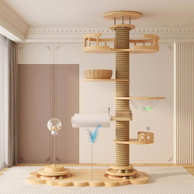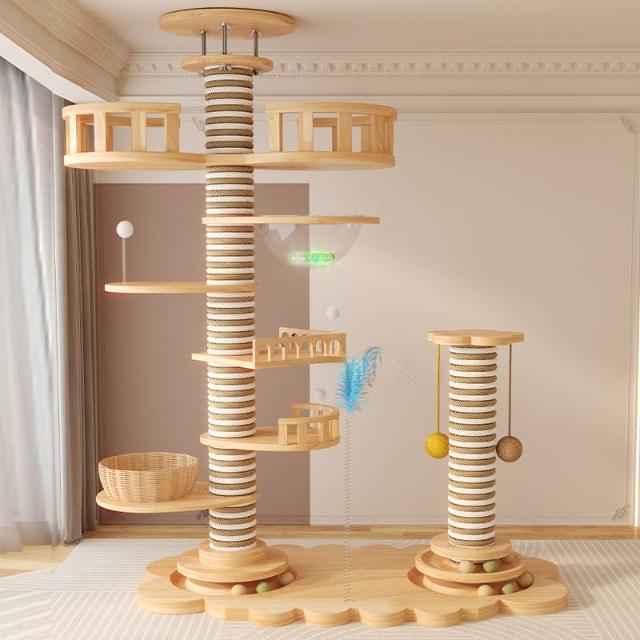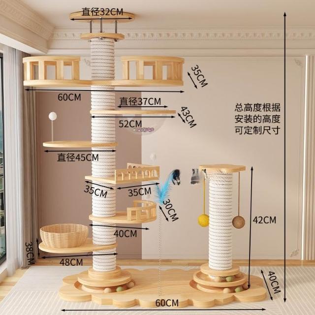 實木貓爬架 實木多層貓爬架 頂天立地貓跳臺 貓爬架 通天柱 木質貓跳臺 貓咪跳臺 貓跳臺太空艙 貓窩 實木貓抓柱