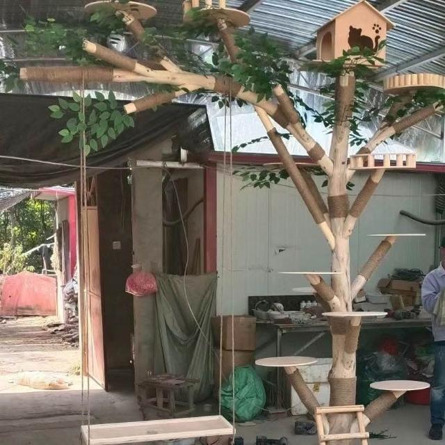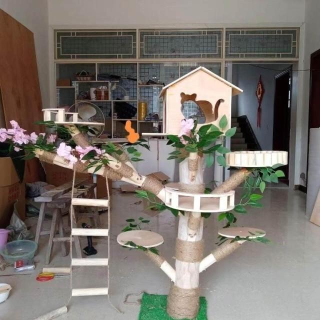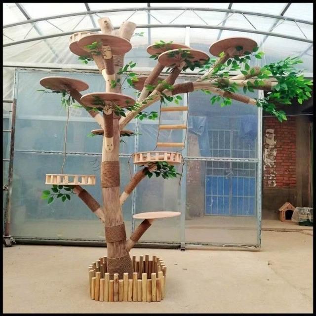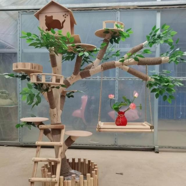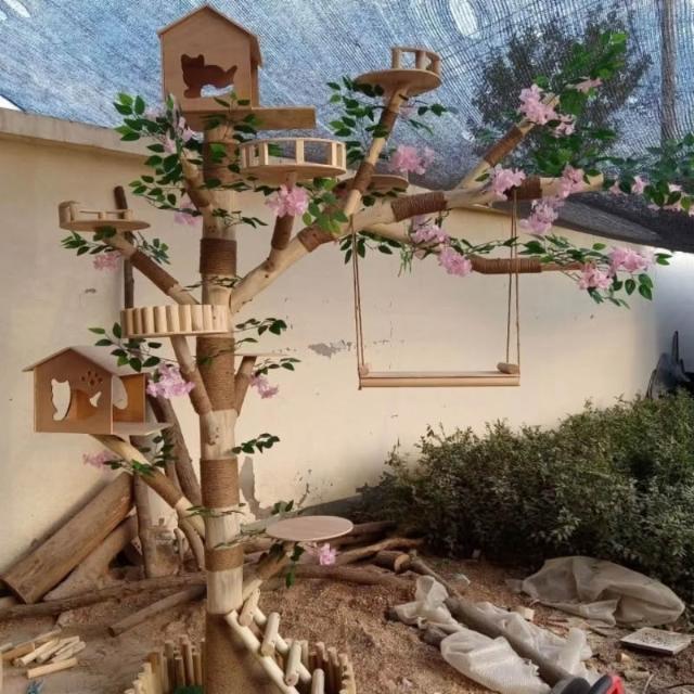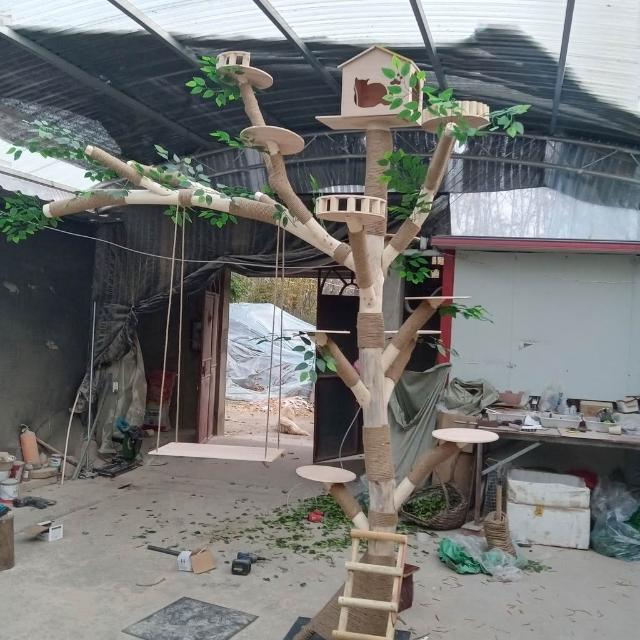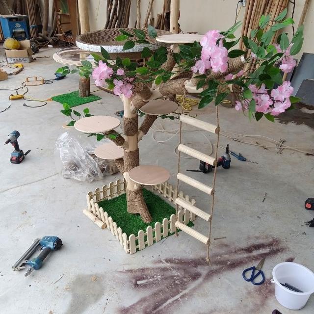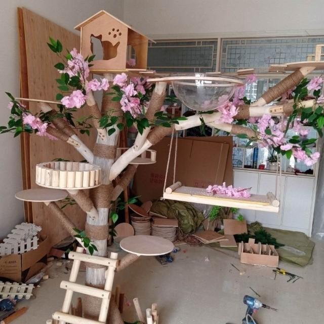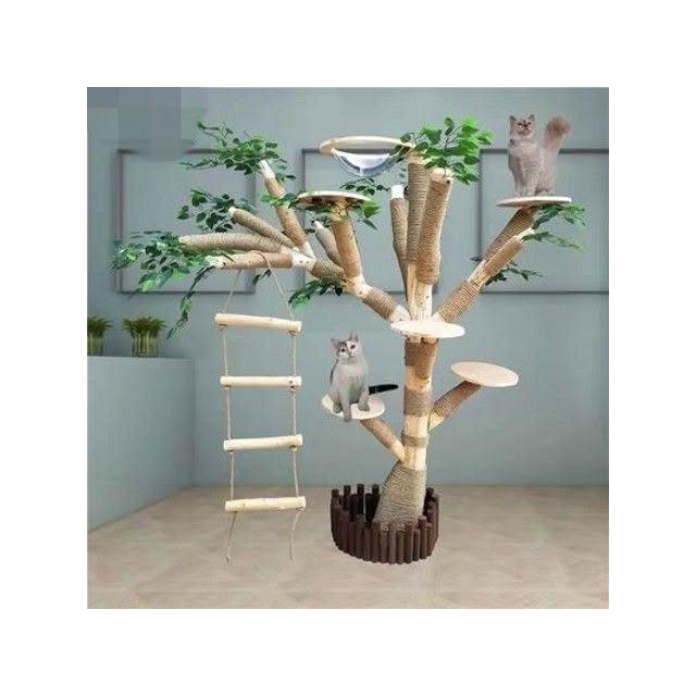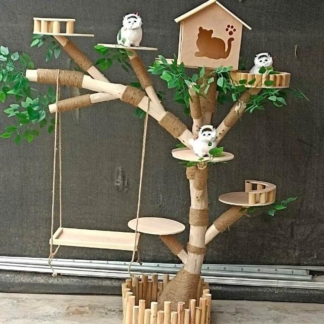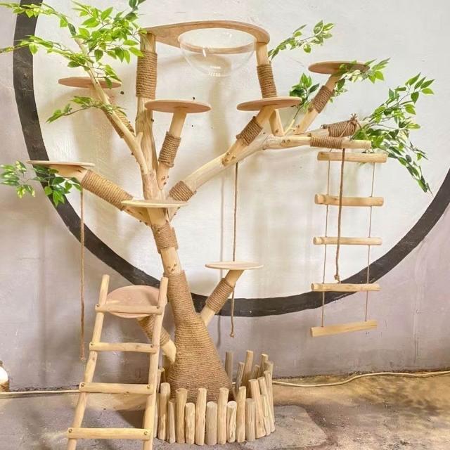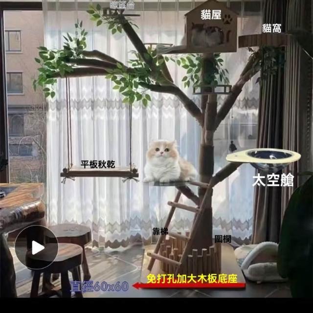 實木貓爬架 仿真枯樹貓跳臺 貓玩具 粗麻繩柱 闆材加厚 寵物用品 大型貓窩 四季通用 實木太空艙 貓跳臺可 貓爬架