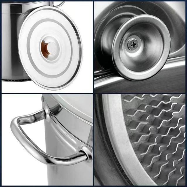 304不鏽鋼翅片節能湯桶 304不鏽鋼速熱桶 商用不銹鋼湯桶 帶蓋大容量加厚複底湯桶 熬湯鍋 鹵煮鍋