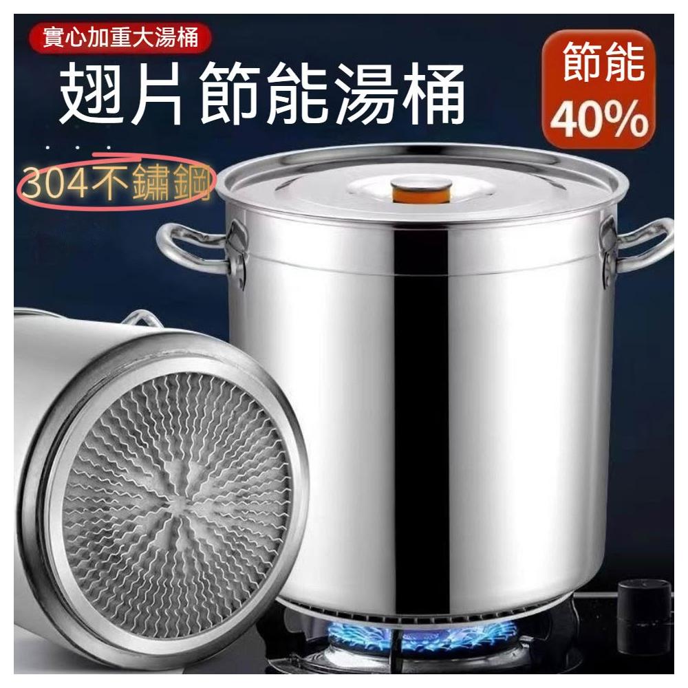 304不鏽鋼翅片節能湯桶 304不鏽鋼速熱桶 商用不銹鋼湯桶 帶蓋大容量加厚複底湯桶 熬湯鍋 鹵煮鍋
